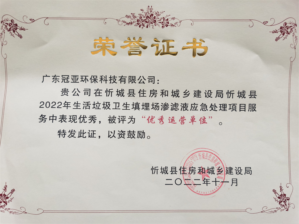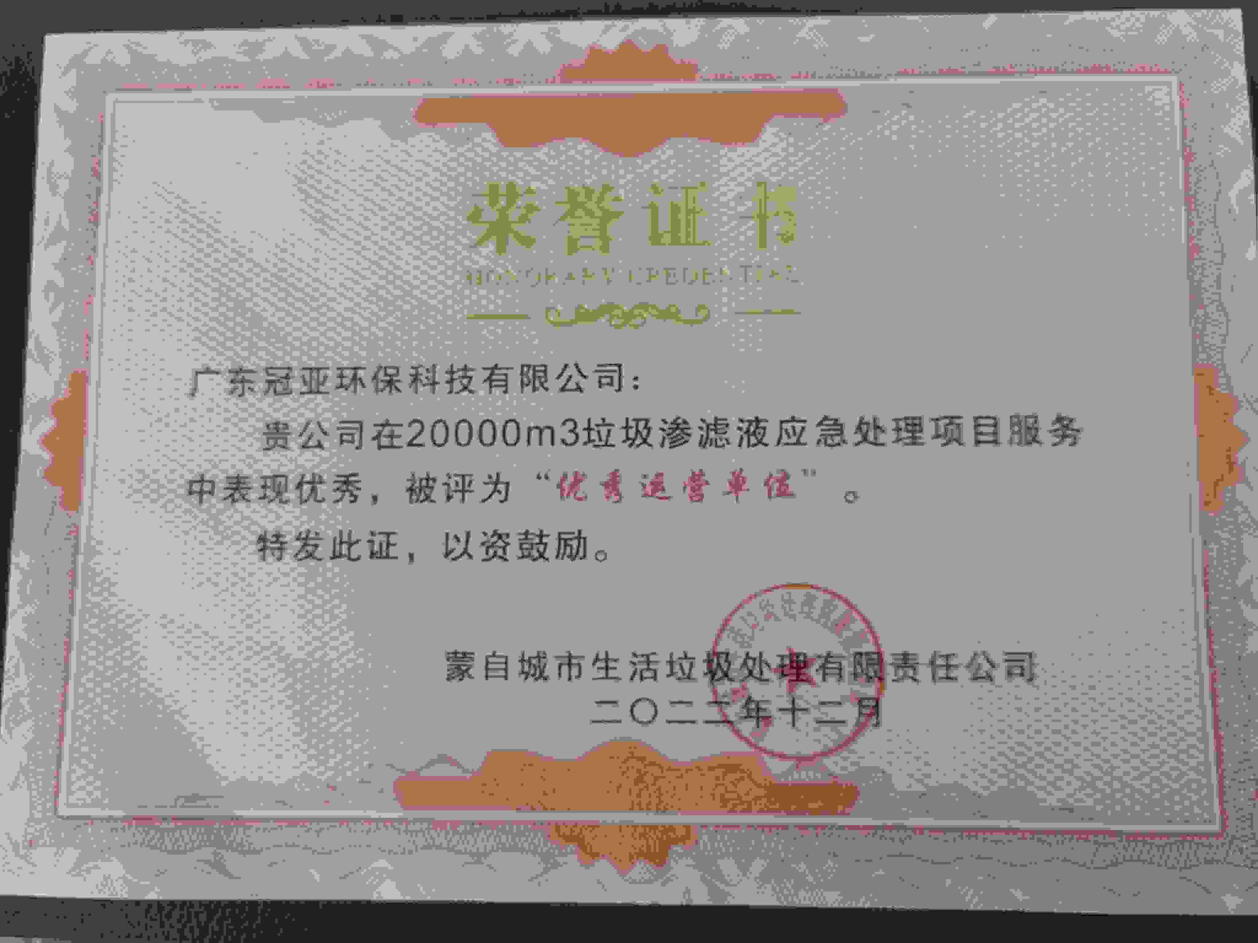 冠亞環保-云南蒙自站點榮獲優質運營單位稱號